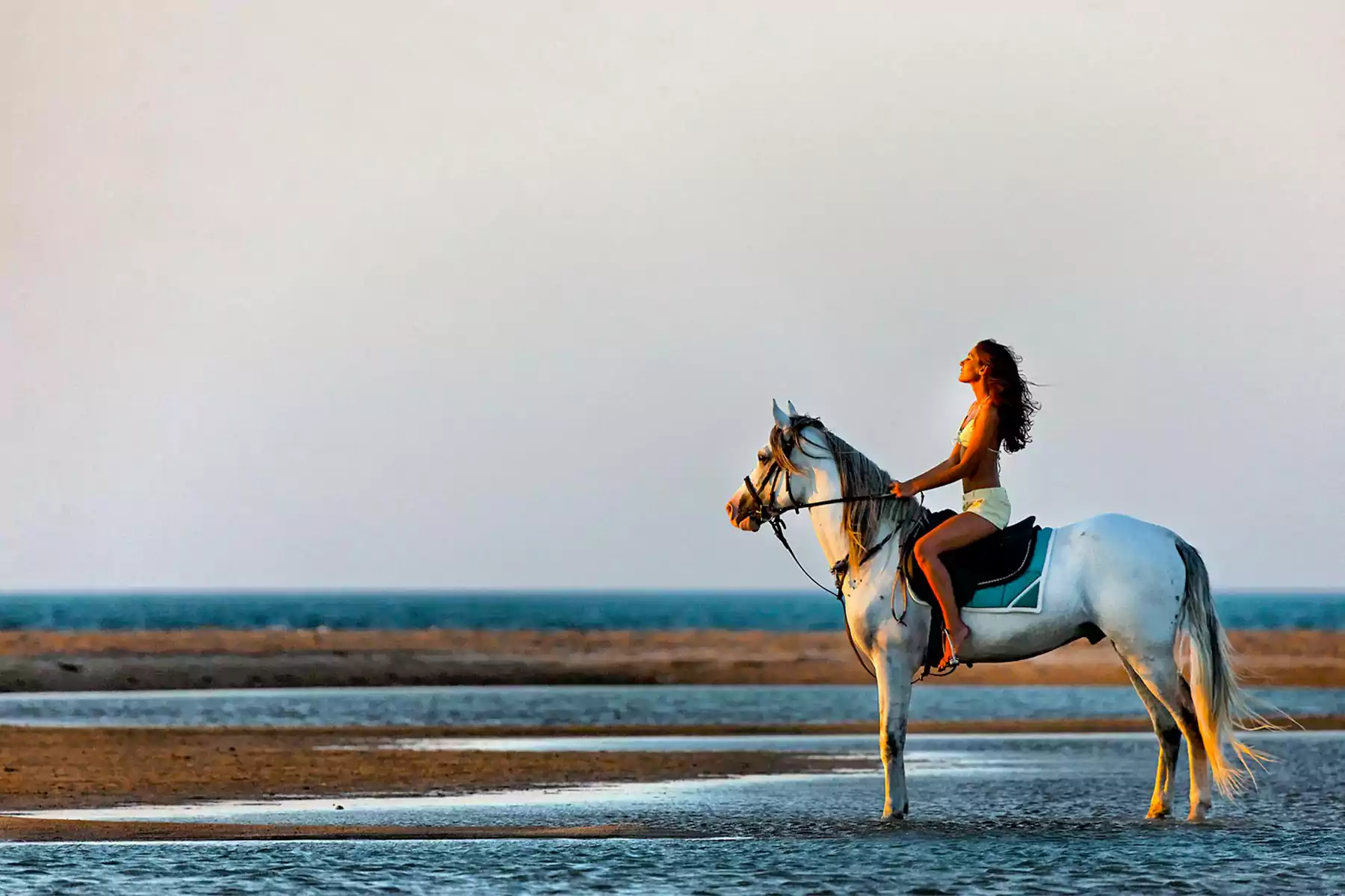 Reach the shore and guide your horse into the gentle Red Sea shallows—perfect photo moment!
